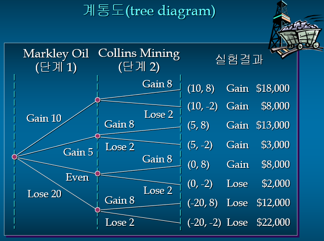 - 사건의 확률 : 그 사건에 속하는 표본점들의 확률의 합과 같다.