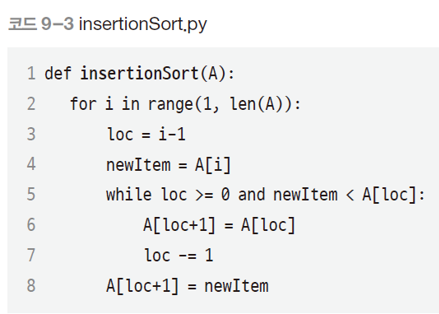 A[i]은 기준이 되는 값, A[loc]는 정렬된 리스트의 마지막 값을 의미한다.